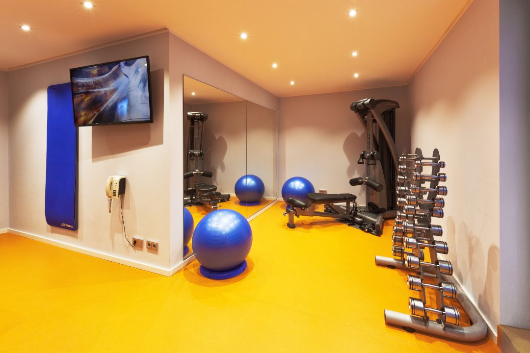 Guests can work out at a gym.